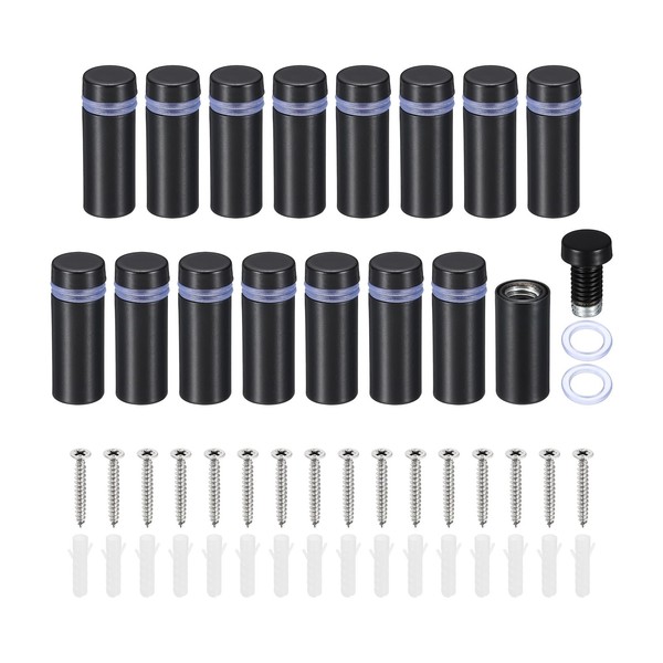 PATIKIL 1/2 x 1.2 Inch Sign Standoff Screws, 16 Set Stainless Steel Wall Standoff Mounting Hardware Advertising Glass Nail for Hanging Acrylic Picture Frame Acrylic Panel, Black