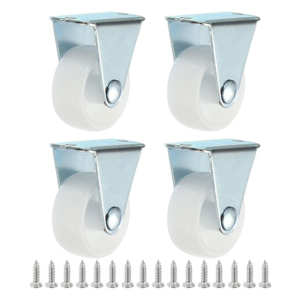 PATIKIL 1.25" Rigid Caster Wheels, 4 Pack Silent Fixed Non-Swivel Plate Caster with Screws Load Capacity 132 Lbs for Furniture Workbench Cart Trolley, White
