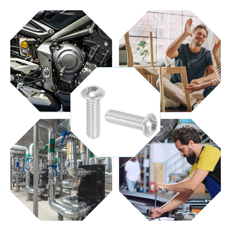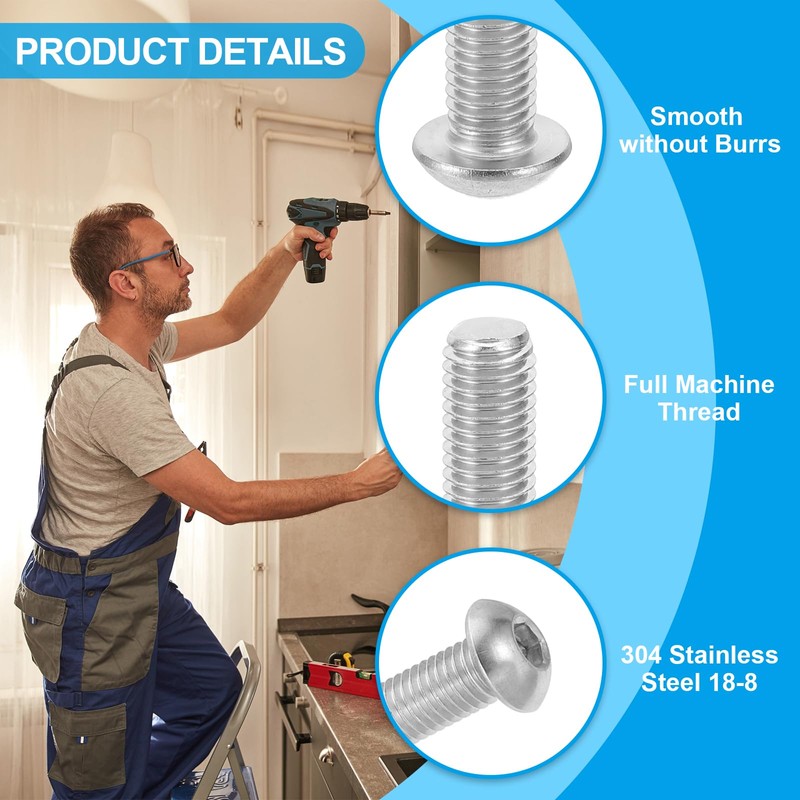 • Advantages: The button head socket cap screw bolts are made of stainless steel 304 (18-8) which is superior to other regular steel or any zinc-plated bolts. The 4.8 strength level provides high strength and corrosion resistance in bad environments, ensuring it can withstand heavy loads and offer a long service life.