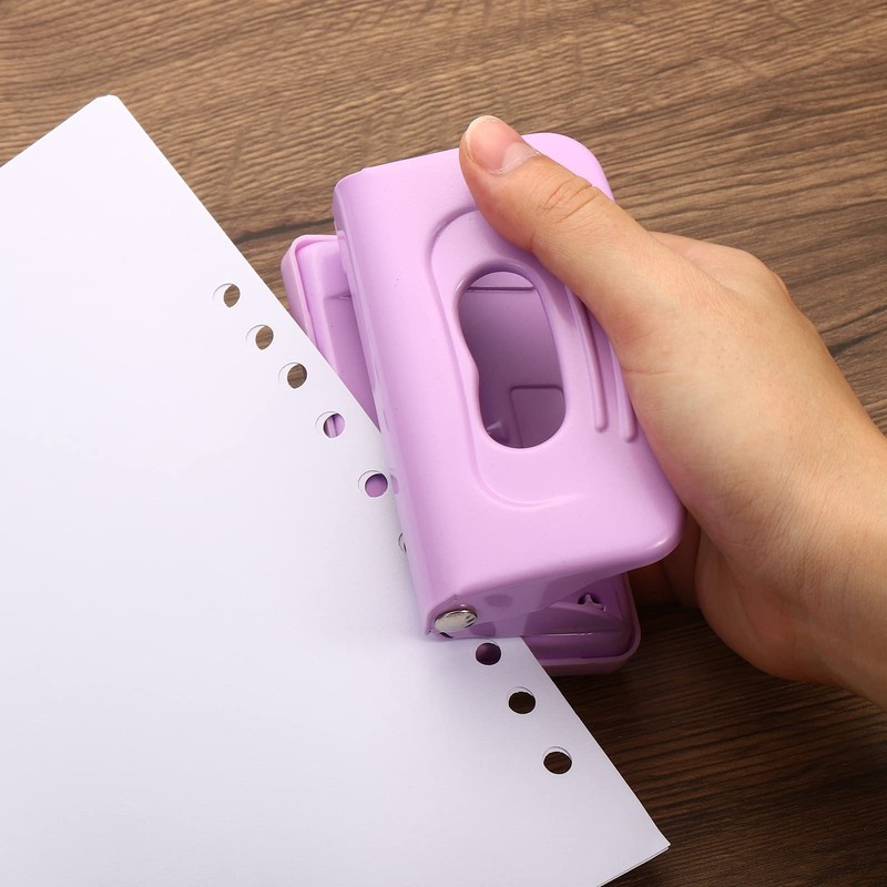 - Colour: Pink; Material: Metal, Plastic; Punch Hole Diameter: 6 mm/0.24 inch; Total Size: 105 x 52 x 40 mm/4.13 x 2.05 x 1.57 inch (L x W x H); Packing List: 1 x Paper Hole Punch