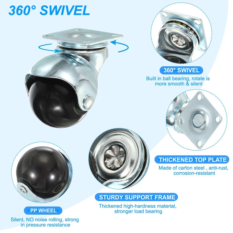 - Smooth & Quiet Rotation: The ball caster is made of PP material, which is thick, elastic, low-slip, not easy to damage the floor, and corrosion-resistant. Equipped with ball bearings, small friction resistance, can withstand high temperature, high speed, and low noise. Carbon steel bracket, galvanized surface, rust-proof, heavy load-bearing, not easy to deform, rivet reinforced, not easy to loosen.