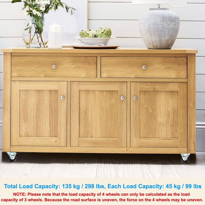 - Size & Load Capacity: Furniture wheel diameter 1.5 inches (40 mm), mounting height 2.13 inches (54 mm). Each ball caster has a load capacity of 45 kg / 99 lbs, total load capacity is 135 kg / 298 lbs.