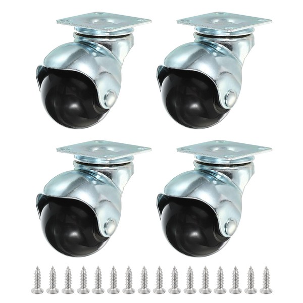 PATIKIL 1.5 Inch Ball Caster Wheels Set of 4, 360° Rotating Swivel Top Plate Wheels 298 lbs Total Capacity Caster with M4 Screws for Furniture Table Cabinet Silver