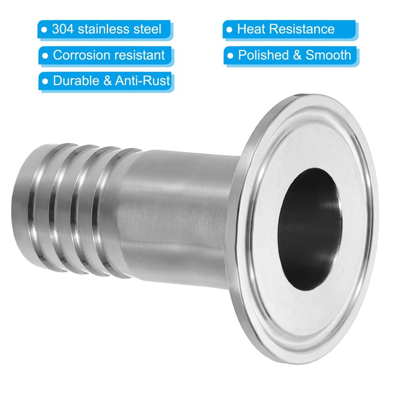 Instruction:Sanitary Tri Clamps Hose Barb Fitting fits tri clamps. Tri clamps barb to hose:suitable for thread, barb, push-in-connection, dry disconnect, etc.