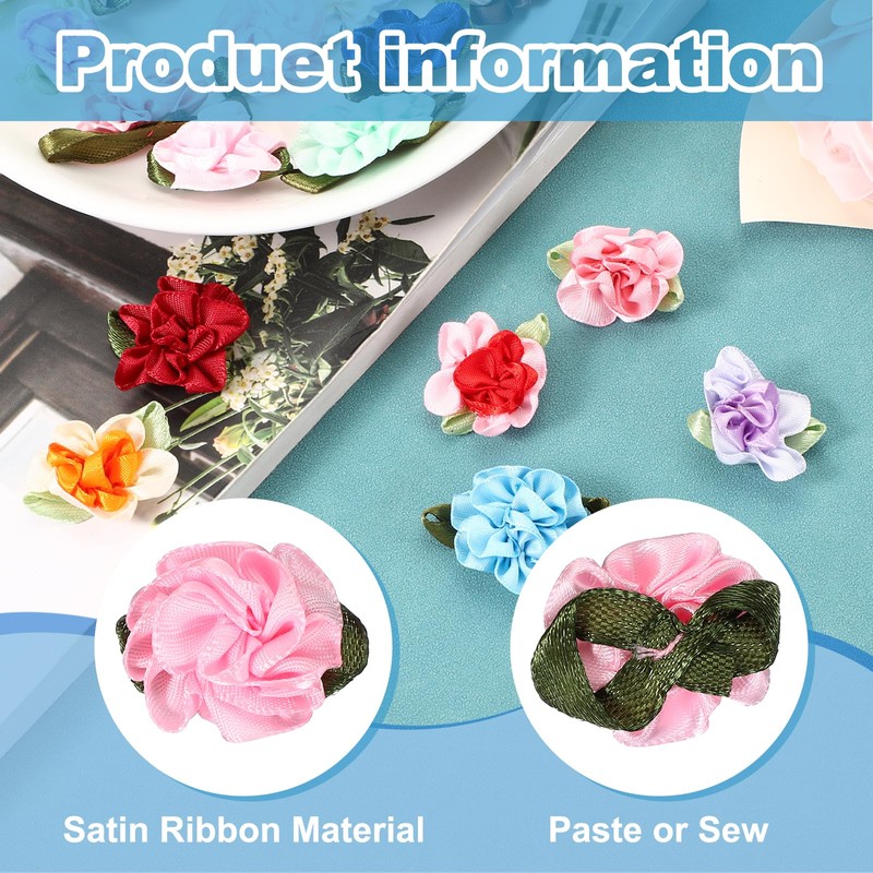 • Instruction: You can sew the mini satin ribbon roses onto fabric or other materials using a sewing machine or hand stitching techniques; If you prefer not to sew, you can also use fabric glue or adhesive to attach the ribbon roses to your project.