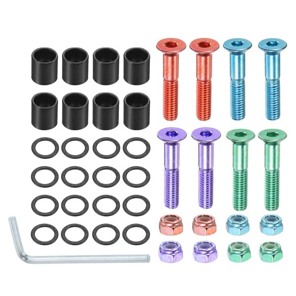 PATIKIL 1 Inch Skateboard Hardware Screws Bolts Kit, 8Pcs Skate Tools Mounting Hex Key Parts with Spacers Washers Nuts Wrench for Skateboard Longboard Wheel Accessories, Multicolor