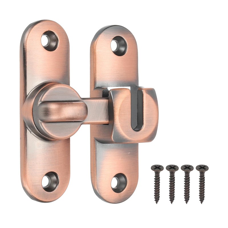 - Size: Color: Copper Tone; Material: Zinc Alloy; Total Size: 60x79mm/2.4x3.1 inch; Hole Center Distance between Panel: 60mm/2.4inch; Aperture: 4.5mm/0.2inch; Package List: 1 x 90/180 Degree Barn Door Latch, 5xScrew