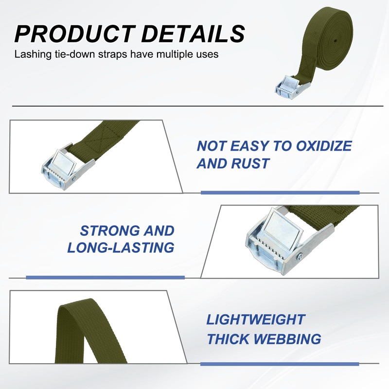 • Advantages: The lashing strap is made of thick webbing and zinc alloy, lightweight for easy carry and storage, strong and long-lasting, not easy to deform, moisture and corrosion resistant, not easy to oxidize and rust, suitable for all kinds of harsh weather conditions, can bear 551 lbs cargo