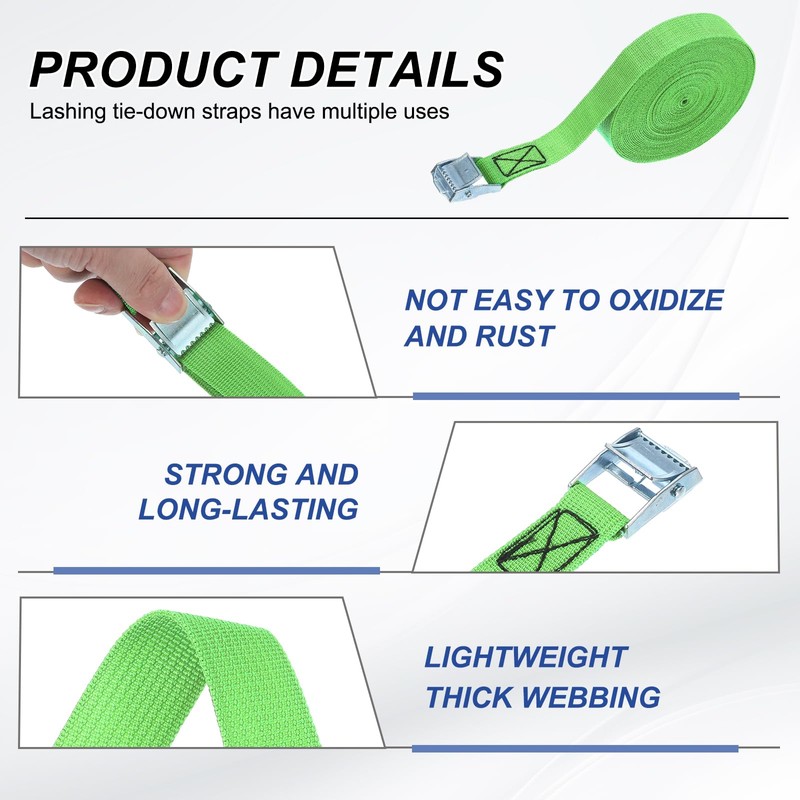 - Advantages: The lashing strap is made of thick webbing and zinc alloy, lightweight for easy carry and storage, strong and long-lasting, not easy to deform, moisture and corrosion resistant, not easy to oxidize and rust, suitable for all kinds of harsh weather conditions, can bear 551 lbs cargo