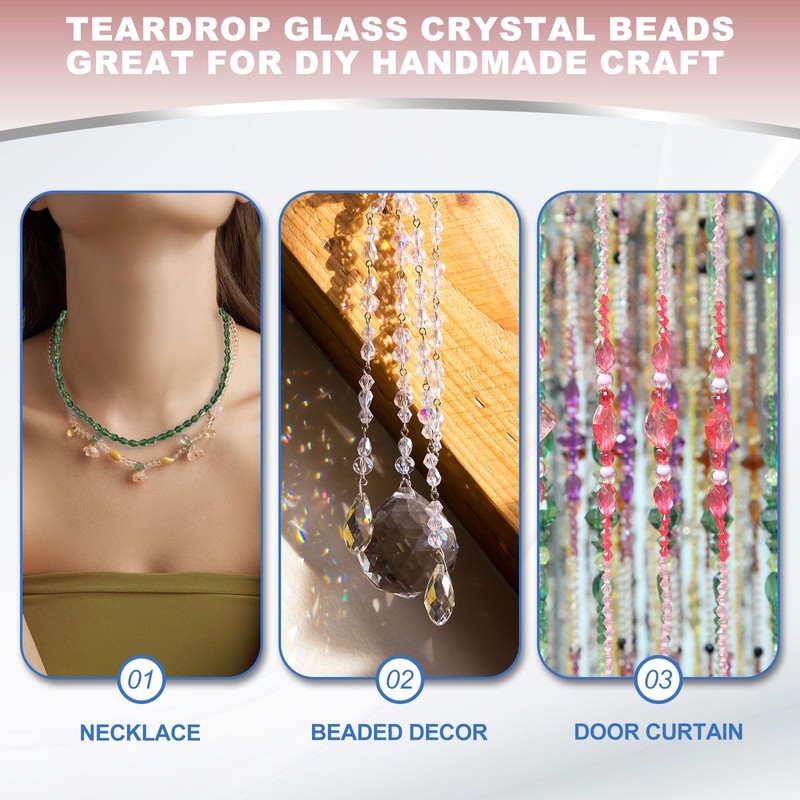 - Application: these teardrop glass beads with vertical holes are great for handmade jewelry, bead necklaces, DIY bracelets, earrings, pendants, clothing decorations, charms and hair accessories, also perfect for DIY candle holder pendants, bead curtains and wedding decorations.