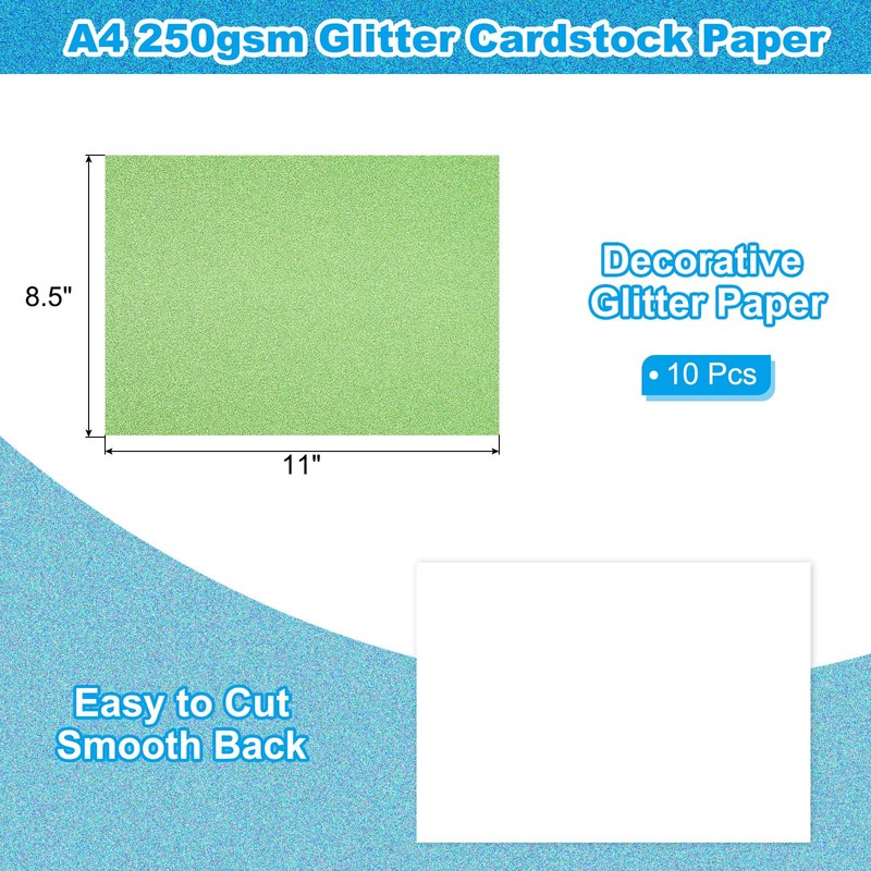 - PREMIUM GLITTER CARDSTOCK: You will get 10 sheets of Light Green glitter paper, these sheets are Square 8.5 x 11inch(28 x 21.6cm), each sheet is of thick quality, weighing up to 250gsm/92lb thick, with excellent texture and feel, perfect for decorating and packaging use.