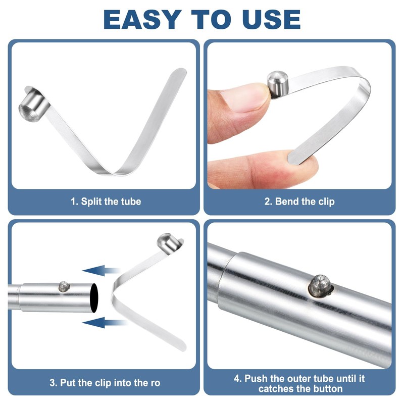 • Instruction: Bend the clip, put the clip into the rod, snap the button clip into the hole, and push the outer tube until it catches the button.