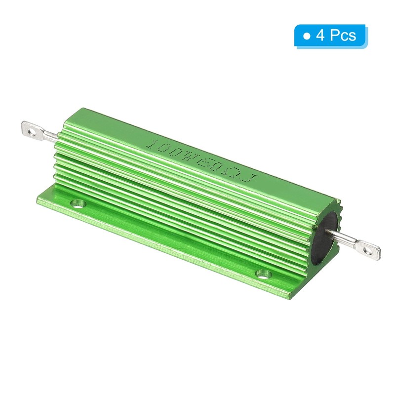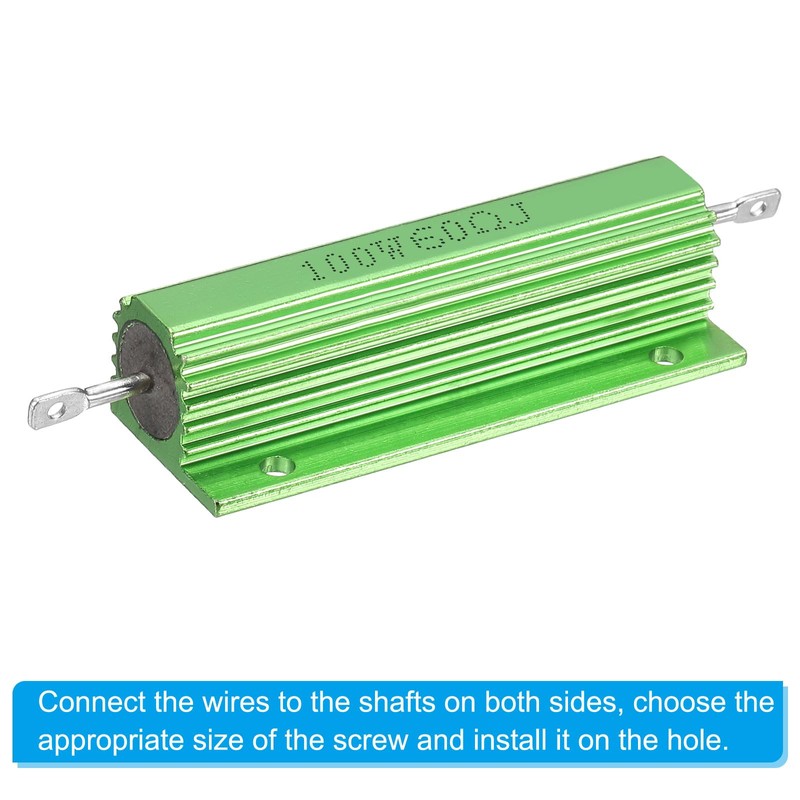 - Color: Green; Material: Aluminum; Power: 100 Watt; Resistance: 60 ohm; Tolerance: 5%; Mounting Type: Chassis Mounted with Screws; Total Size: 60 x 21 x 15mm / 2.4 x 0.8 x 0.6 inch(L*W*H); Packing List: 4 x Aluminum Housing Resistors