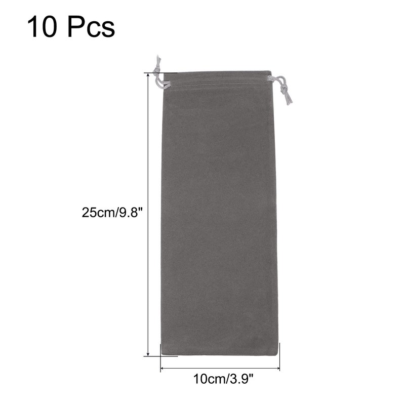 PATIKIL 10pcs Microfiber Pouches 25x10cm Grey Soft Storage Drawstring Gift Bag for Glasses Wedding