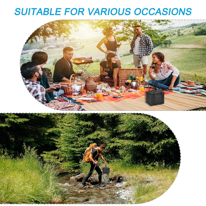 - Application: The insulated cooler bag is widely used for hot and cold food delivery, grocery shopping, camping picnic and other occasion. You can pack a variety of foods and drinks, including sandwiches, salads, fruits, beverages and more. Great for keeping the food fresh and delicious.