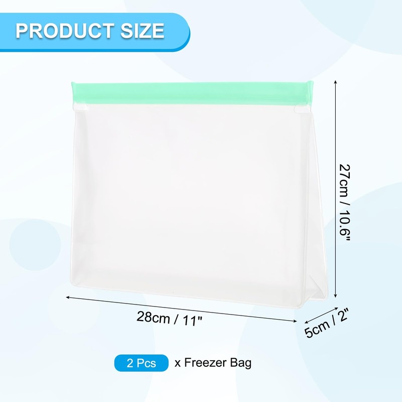 - Specification: Size: 28x5x27cm / 11x2x10.6inch(L*W*H); Color: Green; Material: PEVA; Packing List: 2 Pcs Freezer Bag.