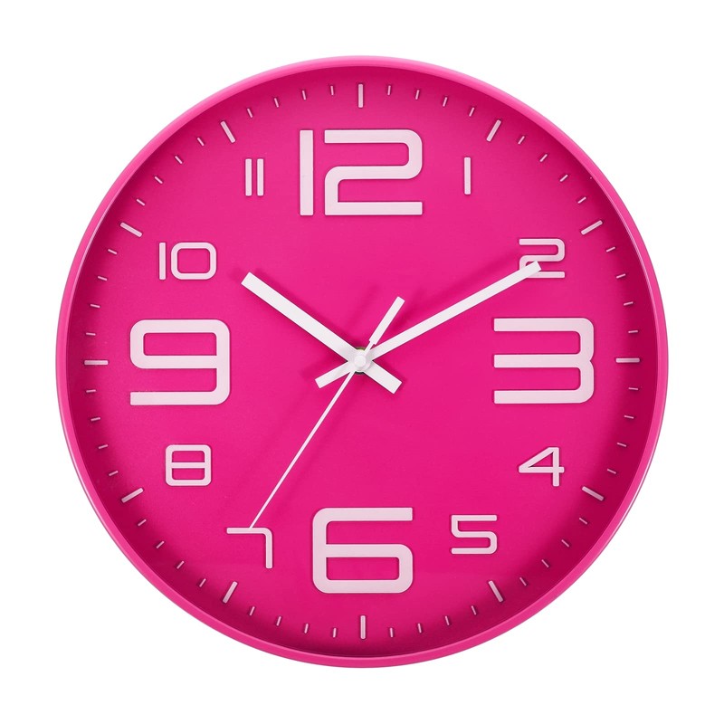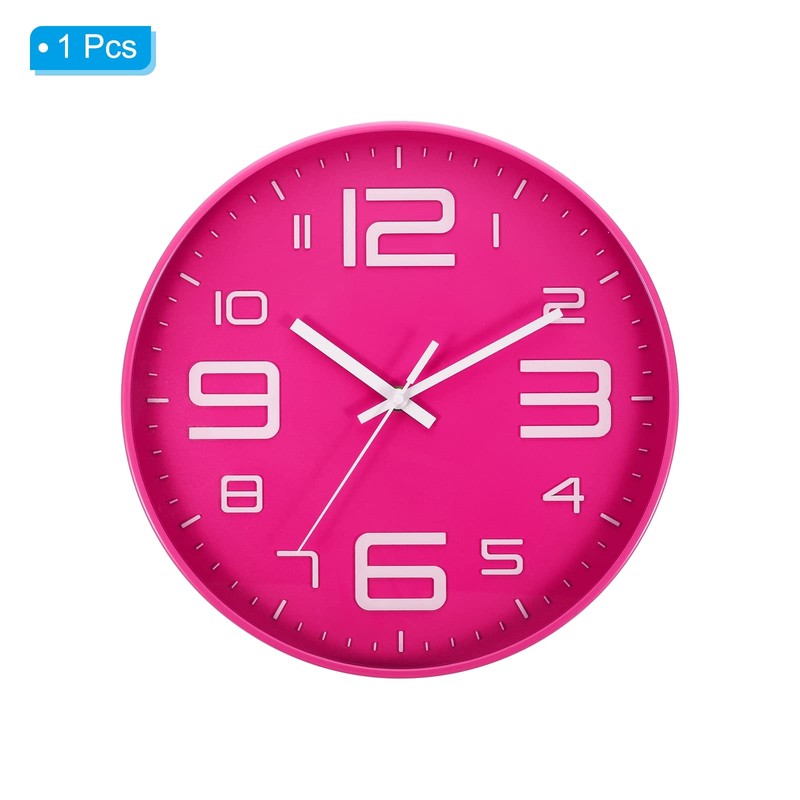PATIKIL 12 Inch Wall Clock, Battery Operated Silent Non-Ticking Sweep Movement White 3D Numbers Round Clocks for Office Bedroom Decorative, Pink