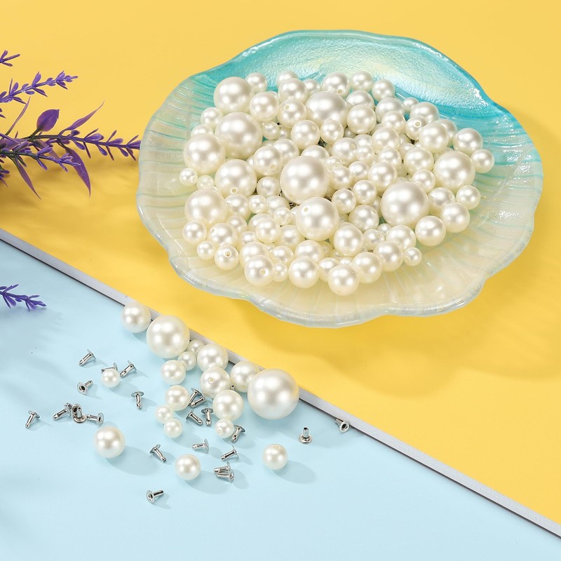 - NOTE: The holes of artificial pearls are smaller than rivet heads; it is difficult to press with your hands or you can use tools to press. The small hole design makes the connection tighter and will not fall off.