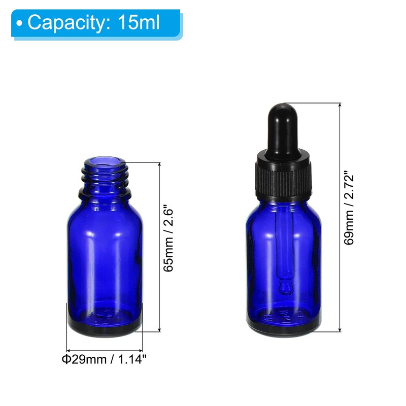 - Color: Blue; Material: Glass; Capacity: 15ml; Bottle Mouth Outer Diameter: 17mm / 0.7 inch; Bottle Size: 65 x 29mm / 2.6 x 1.1 inch (Height x Outer Dia); Total Height: 69mm / 2.7 inch; Packing List: 2 x Dropper Bottle, 6 x Tags