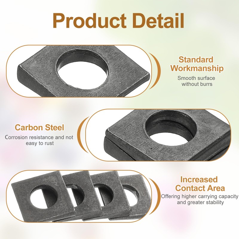 - Advantages: Square washers are made of rust-proof and corrosion-resistant Carbon Steel. They have excellent heat and low temperature strength, good oxidation resistance, durable, not easy to break or deform, suitable for indoor and outdoor use.