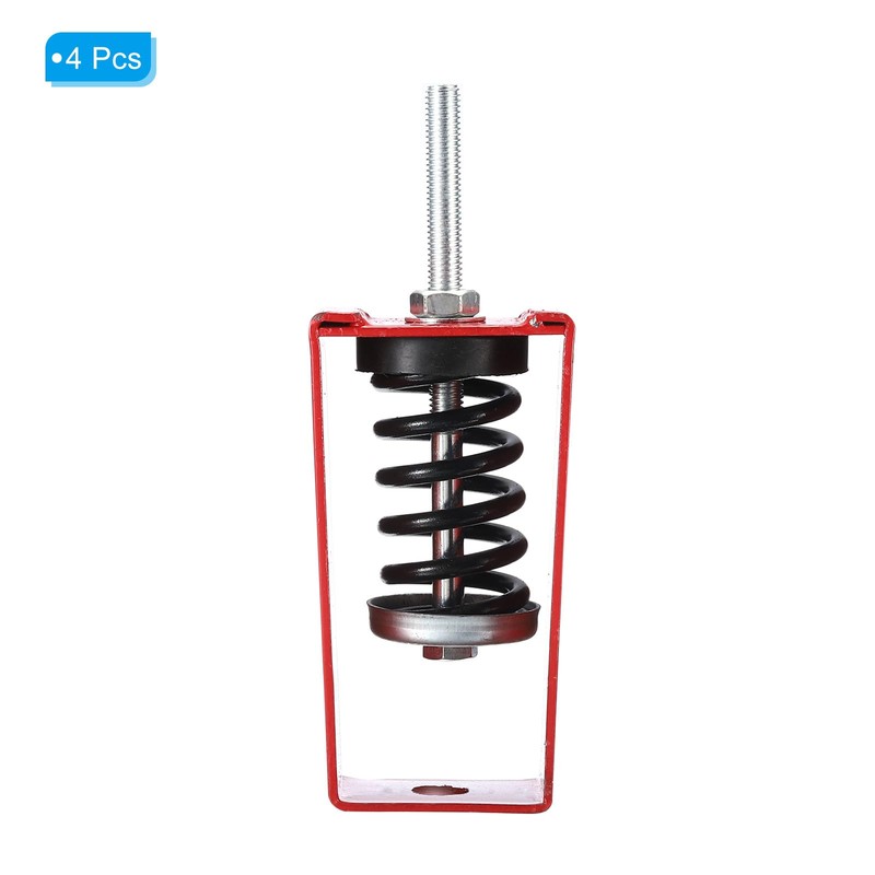 - Specification: Material: Steel, Rubber; Color: Red, Black; Weight Max Load: 75kg / 165lbs; Bolt Thread Size: M10*1.5; Hole Dia: 14mm / 0.55inches; Thread Length: 52mm / 2.05inches; Total Size: 70x55x131mm / 2.76x2.17x5.16inch (L*W*H); Packing List: 4 Pcs x Spring Vibration Isolators