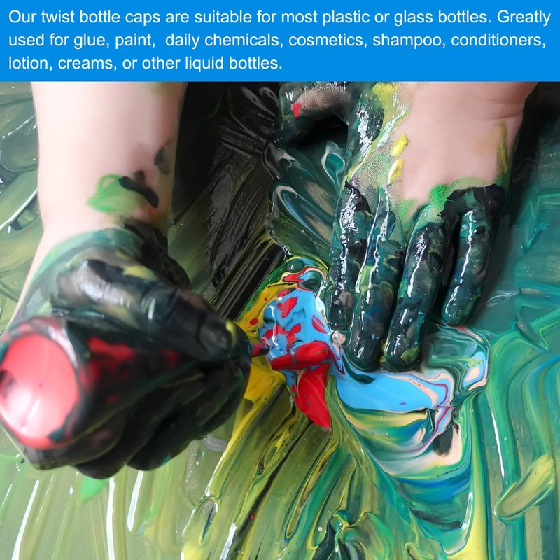 - Our twist bottle caps are suitable for most plastic or glass bottles. Greatly used for glue, paint, daily chemicals, cosmetics, shampoo, conditioners, lotion, creams, or other liquid bottles.