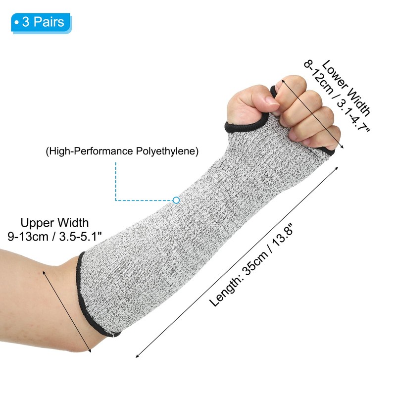 - Advantage: The cut-resistant sleeves are made of HPPE material with 5-level cut resistance, abrasion and tear resistance, breathable and elastic, ensuring comfort and flexibility during long-term wear, and providing excellent cut and scratch protection for the arms.