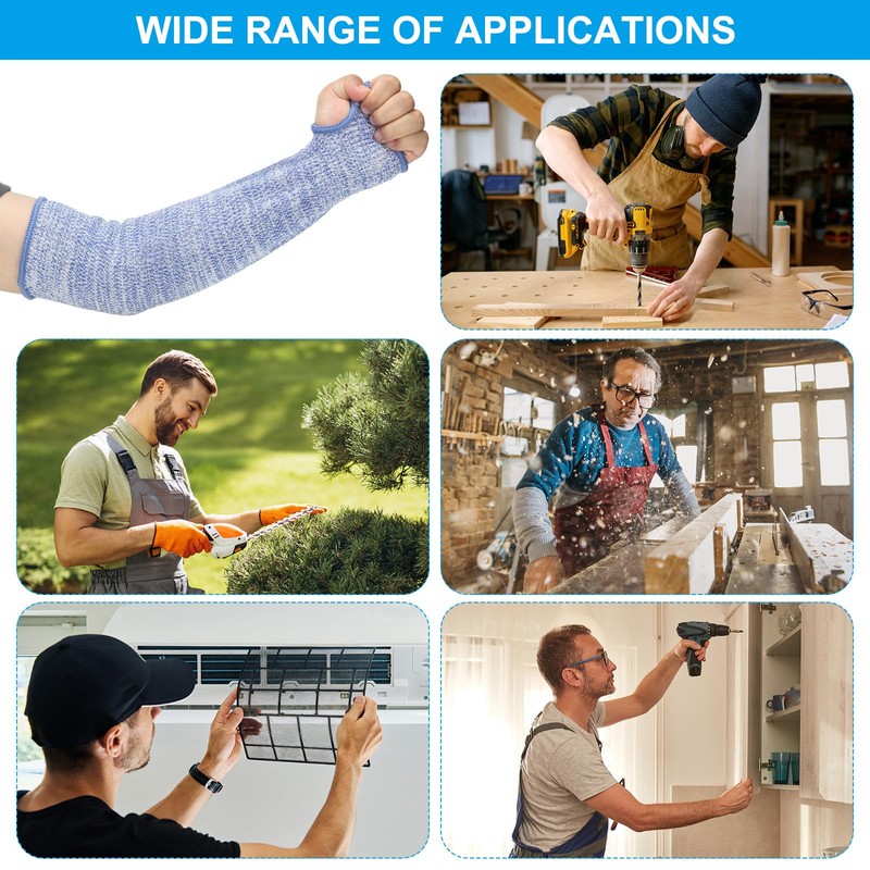 - Application: HPPE arm protection sleeves are designed to protect arms from cuts in a variety of industrial and work environments. Suitable for manufacturing plants, construction sites, auto repair shops, metalworking industries, kitchens, gardens, farms or any workplace where arm protection is needed.