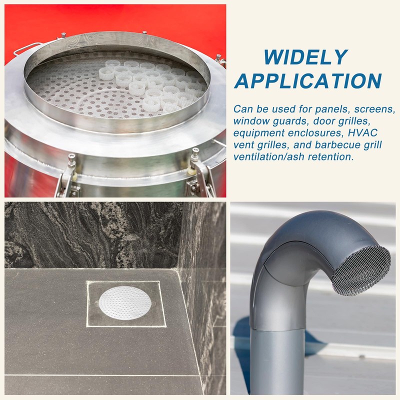 This Perforated Stainless Steel Sheet is a good choice for a wide range of applications. In architectural decoration, it can be used for decorative panels and privacy screens. For security purposes, it serves as a reliable window guard or door grille. It also can be applied in mechanical equipment enclosures for protection against external elements. Additionally, it can be used for vent grille in HVAC system, smoking ventilation and ash retention in barbecue grills.