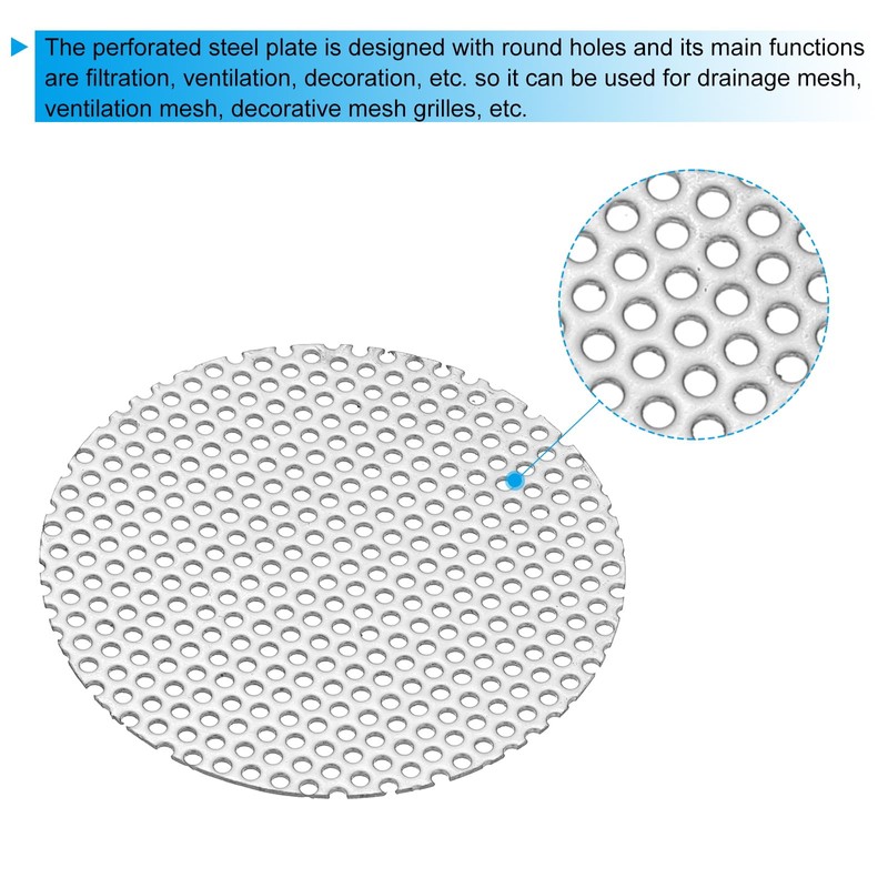The Perforated Sheet offers exceptional strength and stability due to its stainless steel construction. The precise round holes ensure efficient airflow, drainage, and visibility while maintaining structural integrity. The 304 stainless steel material provides good resistance to rust and corrosion, making it suitable for both indoor and outdoor use.