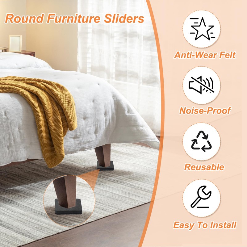 - Application: Felt furniture sliders are suitable for all kinds of furniture, such as tables, sofas, beds, chairs, closets, refrigerators, etc. Helps prevent scratches, scuffs, and other damage to hardwood, tile, laminate, or other types of flooring surfaces