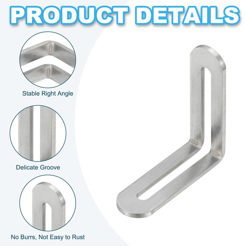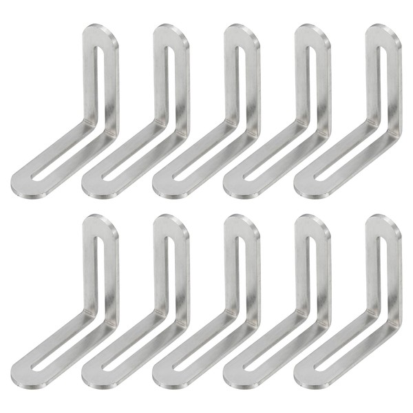 - Color: Brushed Silver; Material: Stainless Steel; Total Size: 58 x 19 x 58 mm / 2 7/25 x 3/4 x 2 7/25 Inch(LxWxH); Slot Hole Size: 45 x 5.5 mm / 1 4/5 x 11/50 Inch(LxW); Thickness: 3 mm / 3/25 Inch; Packing List: 10 Pcs x L-Shape Corner Brace (Screws not included)