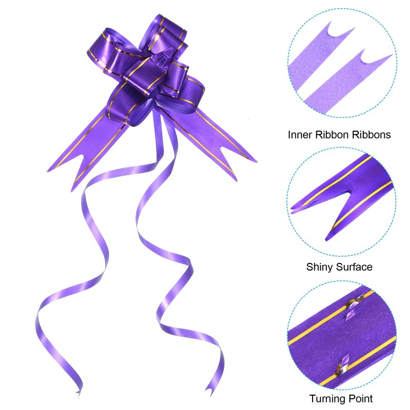- Bow Size: 14 x 7 cm / 5.5 x 2.8 inch (L*W); Dimensions Before Pulling: 42 x 2.1 cm / 16.5 x 0.8 inch (L*W); Color: Dark Purple; Material: Plastic; Packing List: 40Pcs x Sparkling Pull Bows