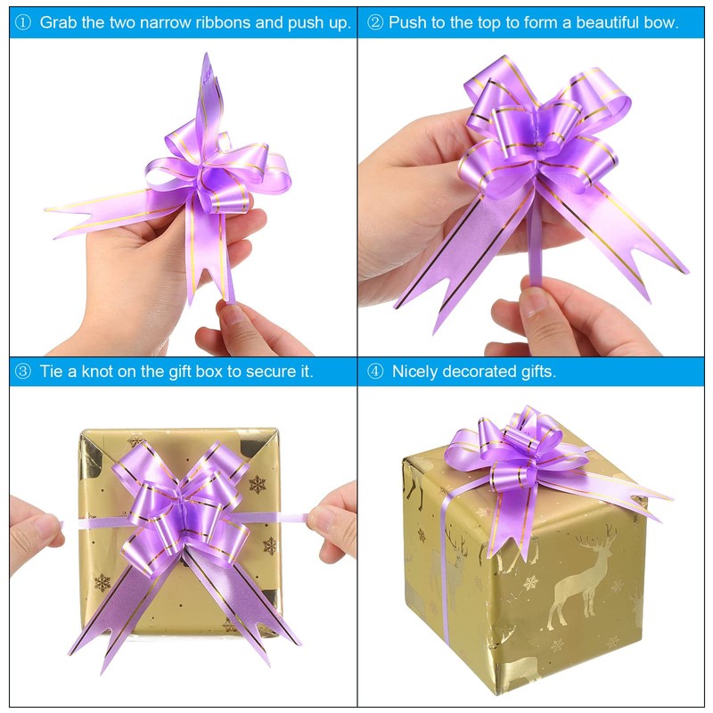 - Advantage: The pull bow is made of waterproof plastic, it won't tear easily when pulled, and it's reusable and durable. The bow ribbons have bright colors, and the surface is shiny and lustrous, which plays a very good role in decorating the holiday, making the gift more beautiful and delicate.