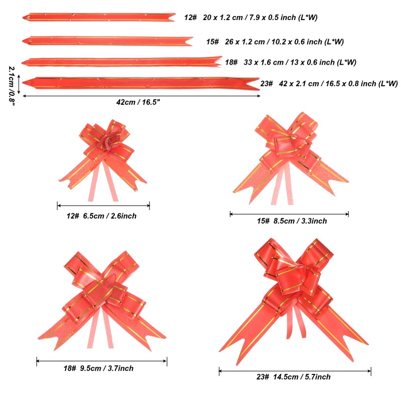 - Application: These pull bows can be widely used for the decoration of weddings, banquet, Christmas, New Year, and other festive celebrations, and can also be used for the decoration of birthday gifts, packaging boxes, bouquet gifts, wine bottles, fruit baskets, cars, etc, to add a festive atmosphere.