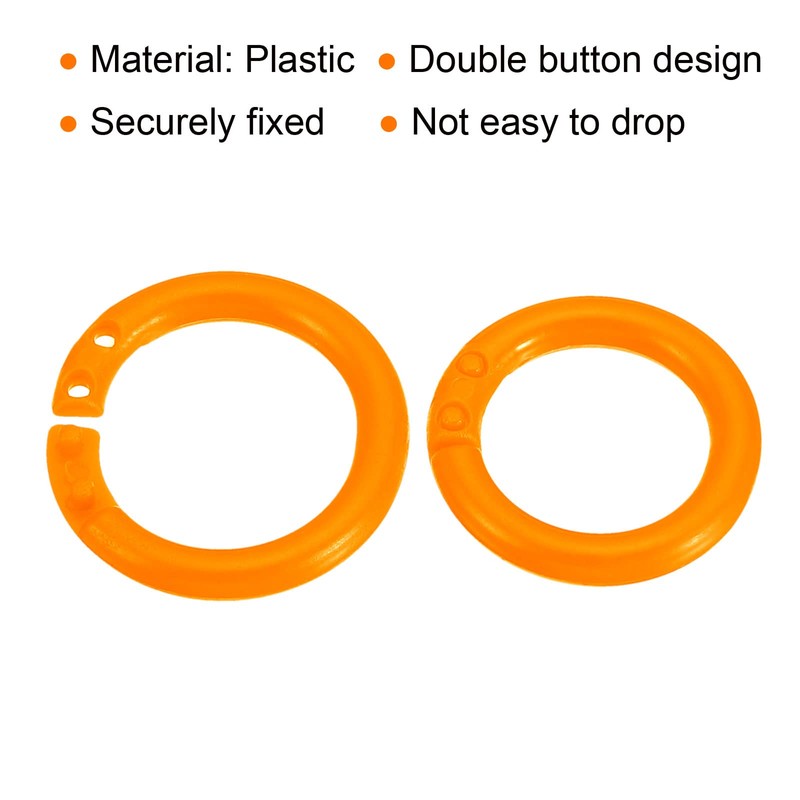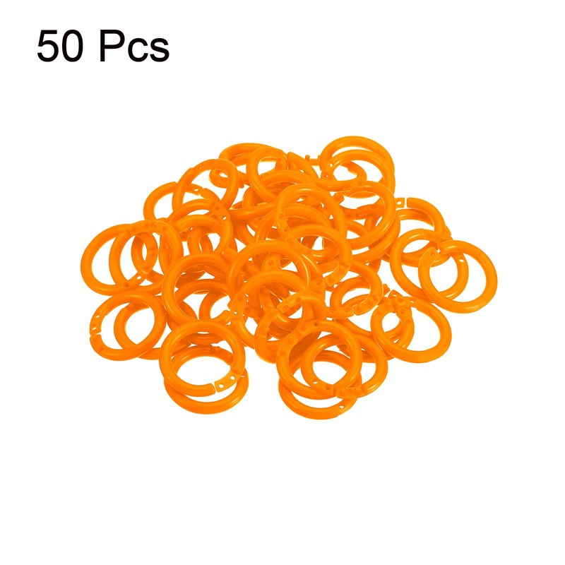 PATIKIL 2 cm OD 1.5 cm ID Loose Leaf Rings, 50 Pieces Binder Ring Plastic for Book DIY Scrapbook Notebook Photo Album, Orange