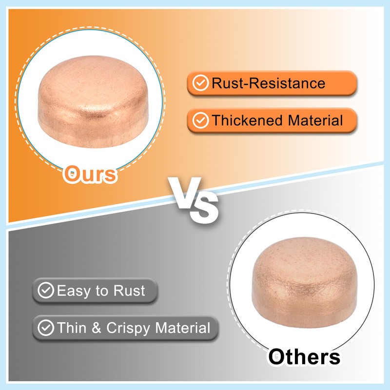 - Advantage: The copper pipe end cap is made of copper material, with good thermal conductivity. Have a good performance on transferring the Heat. Smooth surface and no burrs