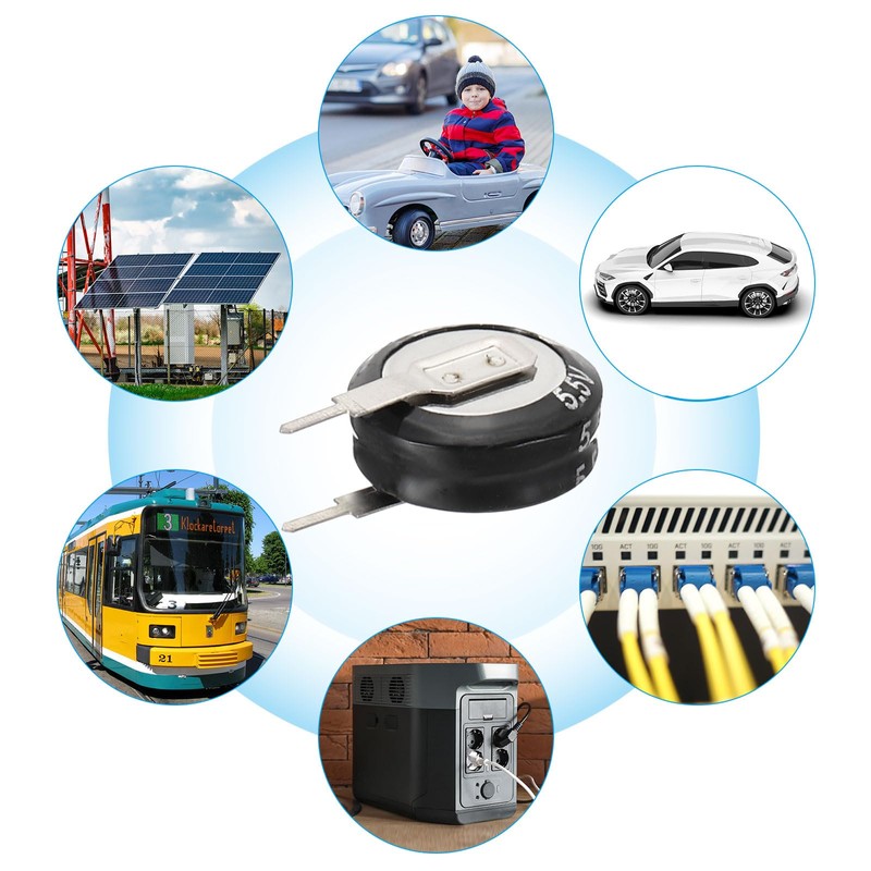 Super capacitors are resistant to high temperatures and have low losses. They can be used in car recorders, smart instruments, vacuum switches, digital cameras, motors, UPS, electric toys, etc.