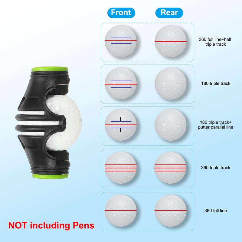 - Golf Marker Tool: The golf ball marker is a marking tool designed for golfers that can draw various lines of 180 degrees on the golf ball, with a simple twist, you can create unique 360° and 180° triple lines to improve putter alignment and enhance your putter aiming. Use for drivers and irons shots