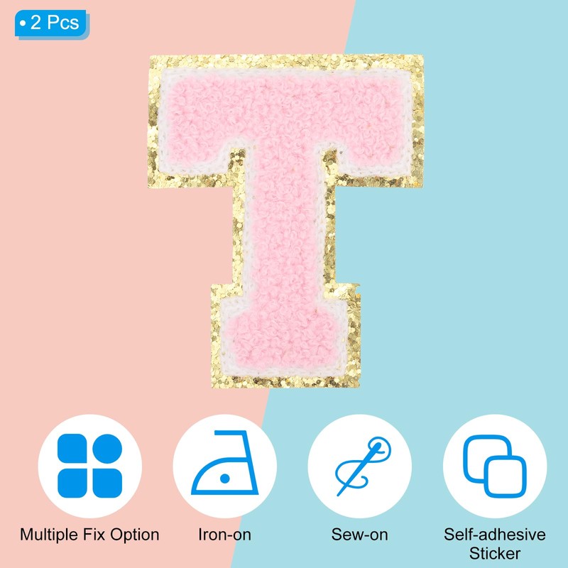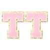PATIKIL 2 Pcs Iron on Letter Patches, Chenille Glitters Letter Patch Pink, Alphabet T