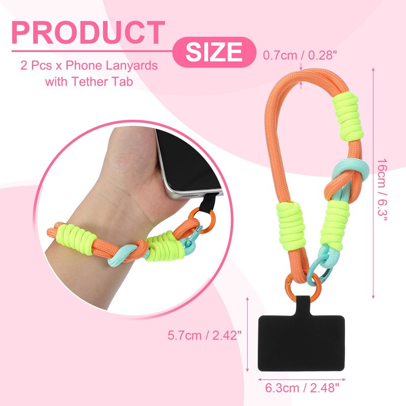 - Color: Orange Yellow Blue; Length: 16 cm / 6.3 inch; Width: 0.7 cm / 0.28 inch; Packing List: 2 Pcs x Phone Lanyards with Tether Tab