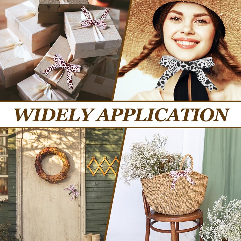 - Application: Stylish Cow Print Ribbon Set for Crafting, Gift Bow Wrapping, and Home Decor. Whether decorating for a western-themed party, creating bandana ribbon accents, or adding farmhouse charm to home decor, this cow spot pattern set provides endless creative possibilities