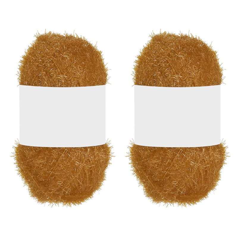 PATIKIL 2 Skeins 109 Yards Scrubbie Yarn, Sparkle Yarn Polyester Scrubbie Sparkle Glass for Dishcloths Crocheting Knitting Blanket Rug Sweater Scarf Hat, Camel