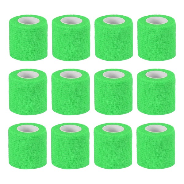 PATIKIL 2" x 177" Self Adhesive Bandage Wrap, 12 Pcs Elastic Self Breathable Self Adherent Wrap Tape for Stretch Athletic Sports Wrist Ankle Outdoor Tape, Bright Green