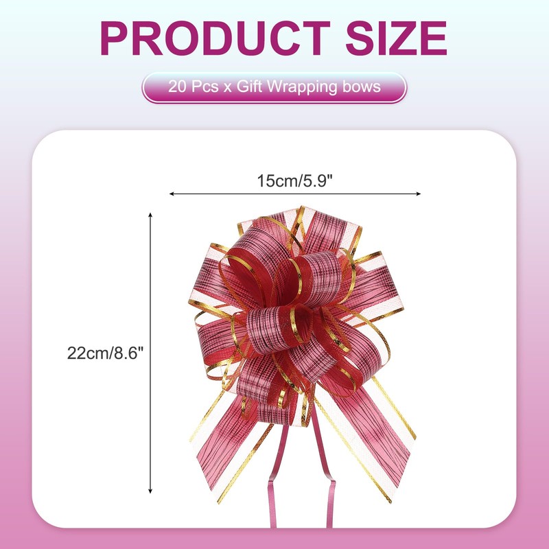 • Color: Wine Red; Size: 15 x 22 cm / 5.9 x 8.6 inch; Packing List: 20 x Gift Wrapping bows
