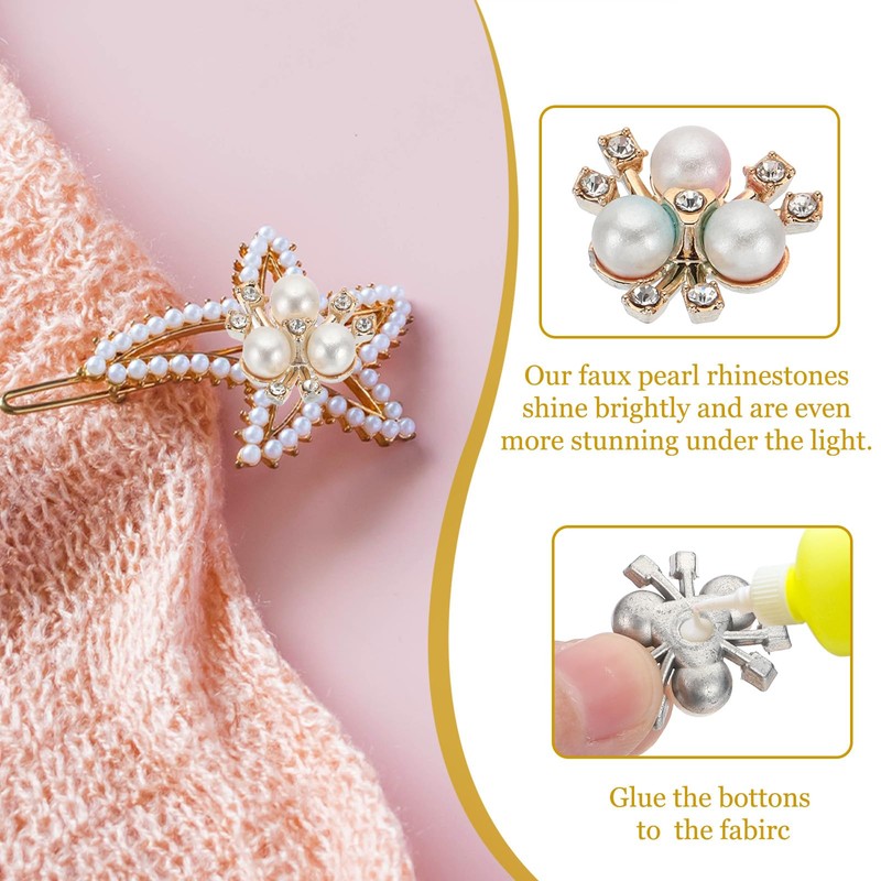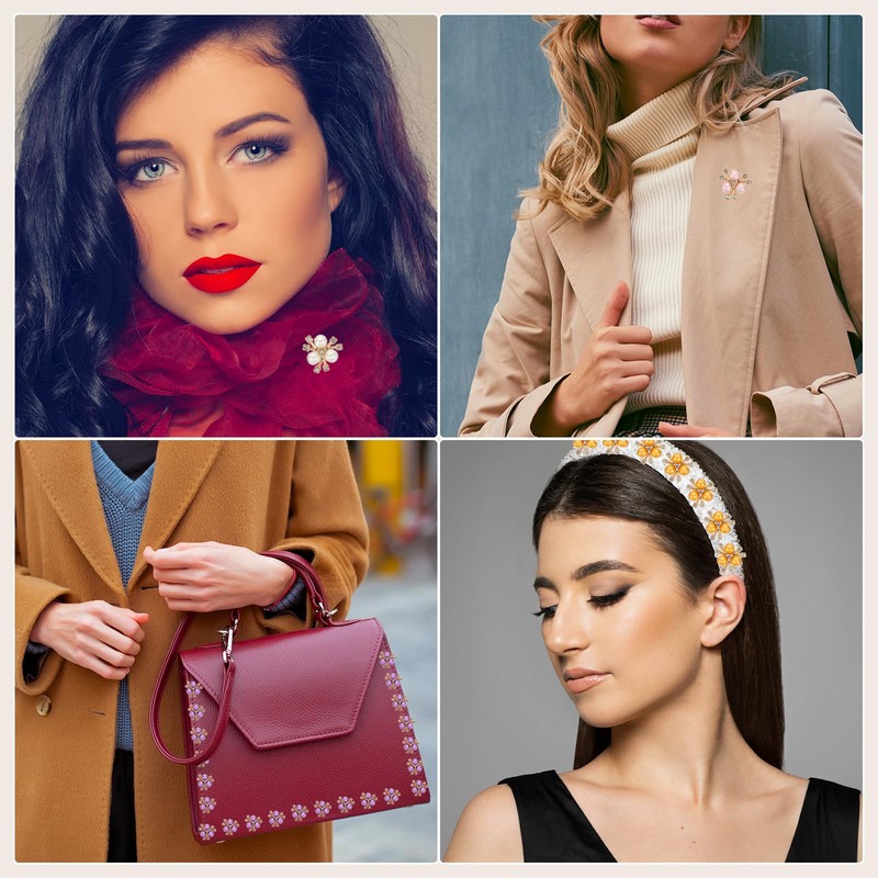 - These DIY rhinestones pearl flower buttons can be widely used to decorate your various accessories, such as brooches, headbands, hairpins, wedding bouquets, rings, gift wrapping, clothing, hair accessories, bags, clothes, shoes, necklaces, etc. Exquisite and shiny decorations are very suitable for weddings, banquets, ceremonies, carnivals and other occasions, and the exquisite and shiny decorations will make you look more elegant and charming at parties, weddings and other occasions.