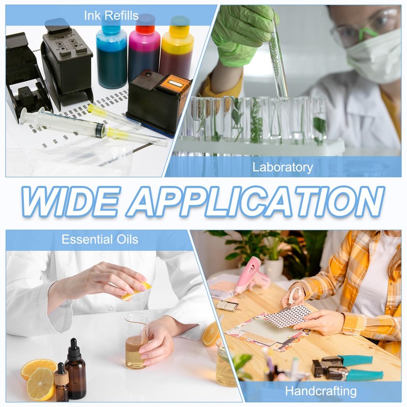- Application: These PP dispenser needles are widely used in laboratory experiments, electronic manufacturing, jewelry making, handcrafting, etc. They can also be used for sealants, craft glues, essential oils, ink refills, and perfume
