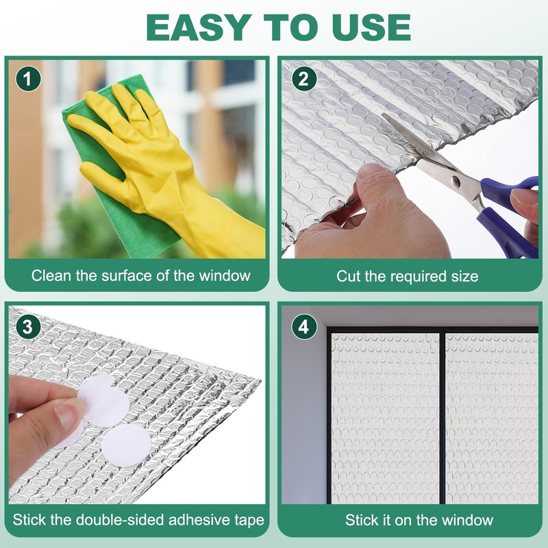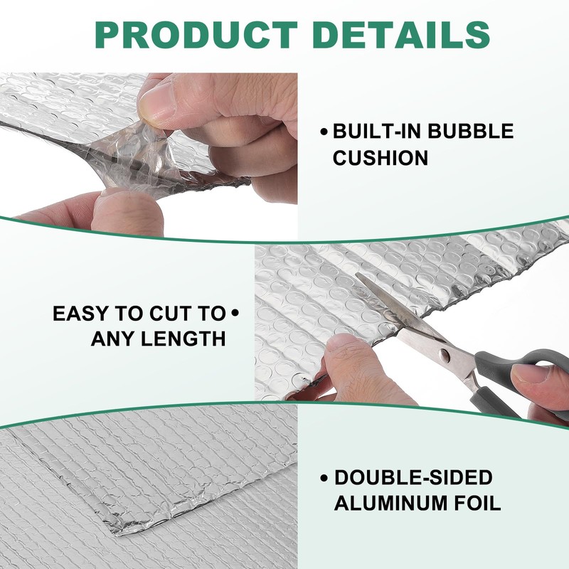 - Application: Bubble reflective foil is used for thermal insulation, keeping the room warm/cool, such as window insulation, and indoor insulation in winter, can be used on window, campers, walls, pipes, attics, sheds, garage doors, panels, Rooftop, RVs and commercial buildings etc.