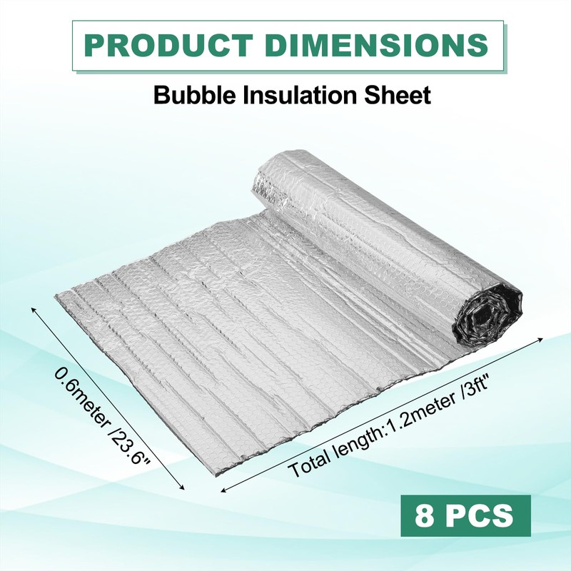 PATIKIL 23.6IN x 3FT Reflective Bubble Insulation Sheet 8 Pcs Double Side Aluminum Foil Bubble Shield Heat Thermal Radiant Barrier for Windows, RV, Roof, Garage Door