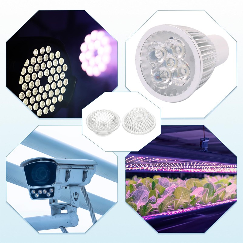 - Application: These LED lenses have different emitting angles and can be used with 1W, 3W, and 5W lamp beads. They can focus the emitting angle of LED lamp beads into any desired angle from 5 degrees to 120 degrees, making the light more concentrated, brighter, and farther. Widely used in LED lamp cups, ceiling lights, spotlights, floodlights, spotlights, car lights, infrared monitoring equipment, etc.